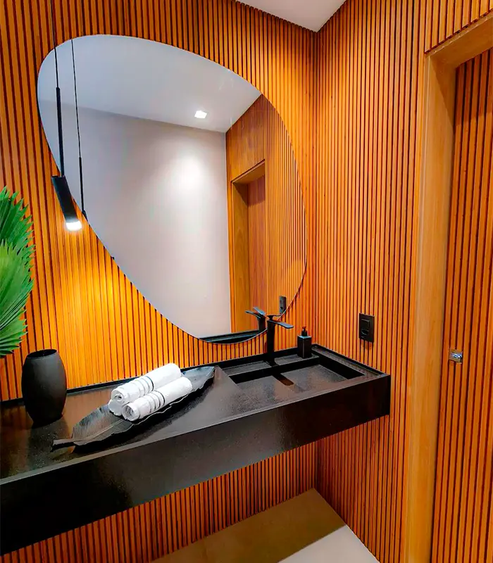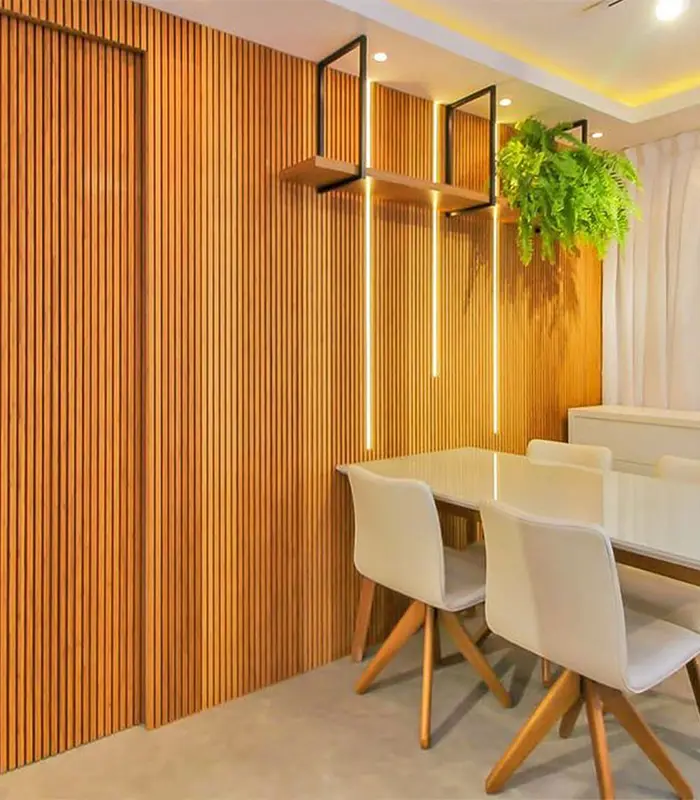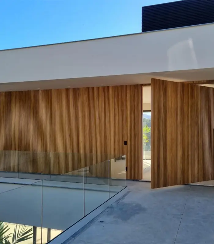 O Painel Ripado de Bambu 290x14cm combina beleza natural e responsabilidade ambiental, sendo produzido a partir de matéria-prima 100% renovável. Versátil e elegante, pode ser aplicado em paredes, tetos, móveis, divisórias e fachadas, valorizando tanto ambientes internos quanto externos. Uma escolha ideal para quem busca modernidade, aconchego e estilo sustentável na decoração.