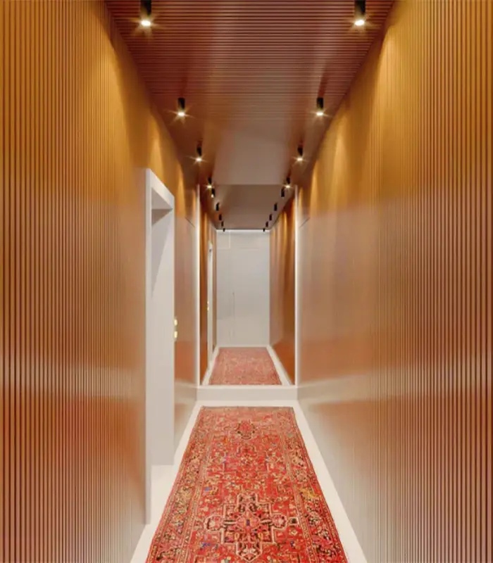Aplicações: Painel ripado de Bambu 100% ecológico. Pode ser aplicado no Teto, paredes, armários assim como fachadas quanto em áreas internas.