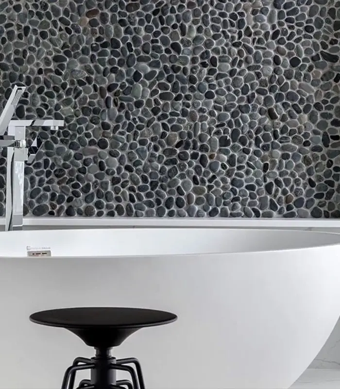 Placa Seixo Telado 30x30cm Placa Preto ideal para revestimento de áreas externas, proporcionando elegância e resistência em seu projeto.