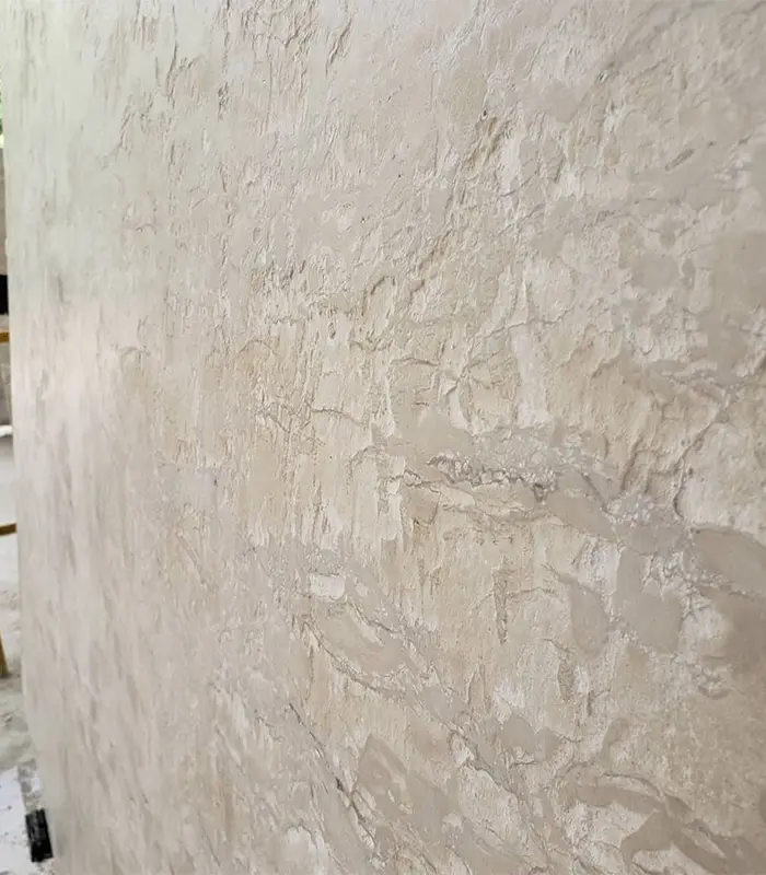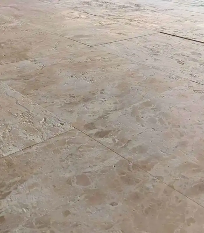Travertino 100x100cm Escovado Nacional – Pedra natural em grande formato com acabamento escovado, que realça a textura e os veios autênticos do travertino. Ideal para projetos internos e externos, une resistência, sofisticação e um toque rústico elegante.